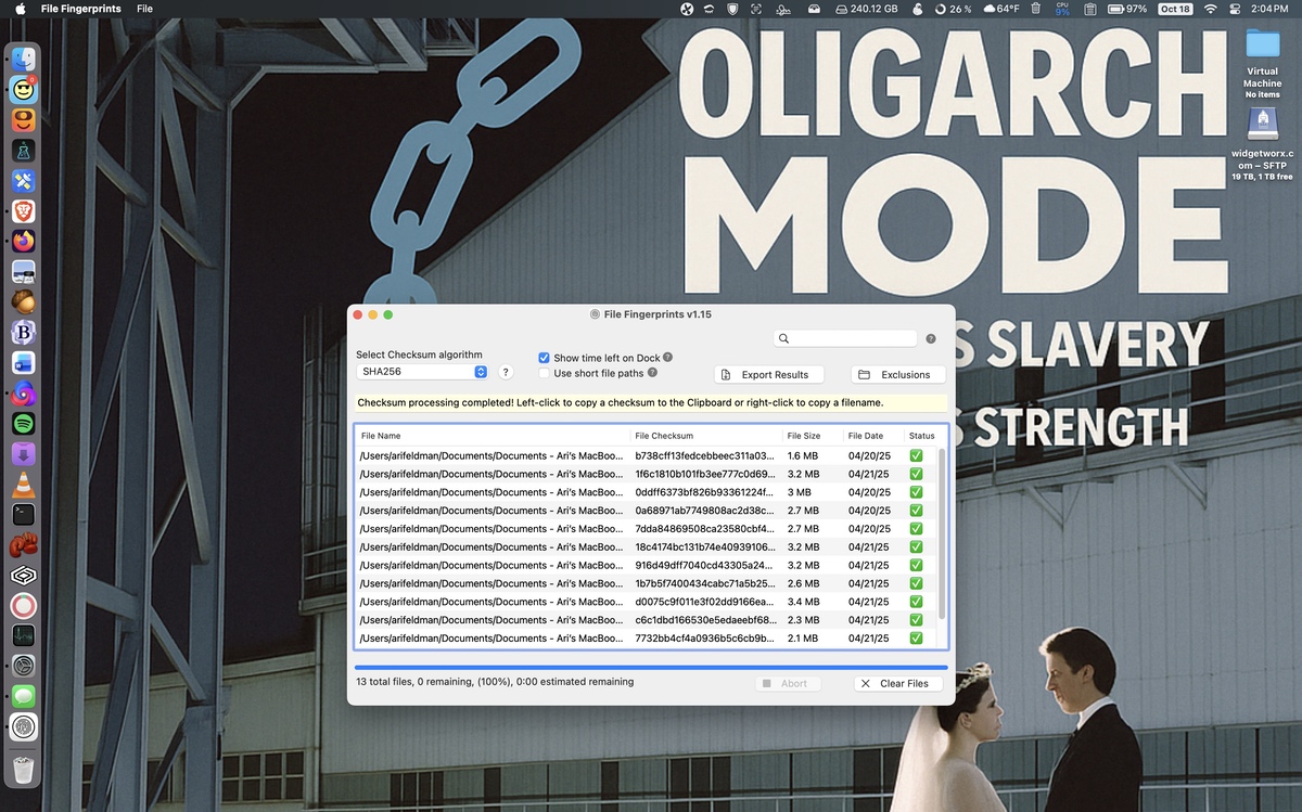 Download File Fingerprints 1.15 (Universal)Calculate checksums by dragging files or folders into the app and exclude directories if needed