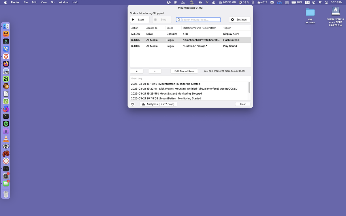 MountBatten can work in tandem with macOS's built-in device security and can even block physical drives from mounting that macOS trusts